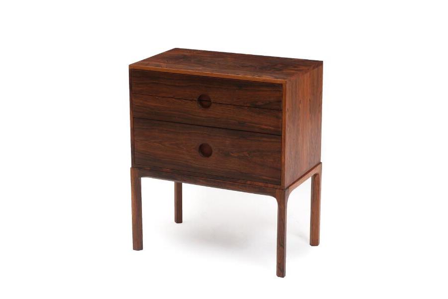 製作を担うアクセル・ケアスゴー工房は、細部の精度と仕上げ品質に重心を置く体制で知られます。機械加工と手仕事を往復しながら、脚のプロポーションや抽斗内部の仕様まで微調整を重ね、量産の安定性と手工の品位を同居させています。デザイナーとの緊密なやり取りを通じて、設計の狙いを外観・構造・操作感に一貫して反映させている点が本作にも明瞭です。