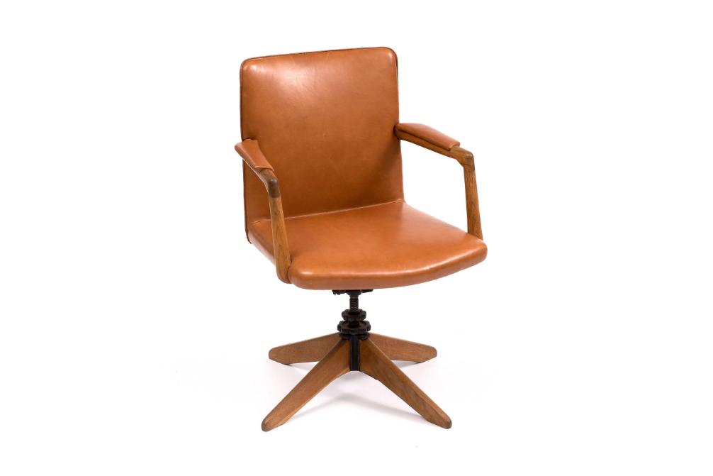 1940年代初頭のデンマークは、キャビネットメーカーの伝統と近代建築の合理性が鋭く交差する転換期にありました。のちにデニッシュ・モダンと総称される潮流が形成される直前、家具は装飾的な工芸品から、建築と一体化した機能装置へと役割を変えつつありました。A721 スウィベルチェアは、まさにその境界線上で生まれた作品です。