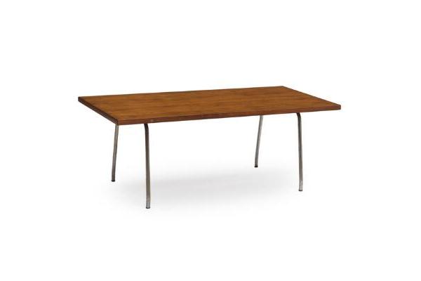 AT13は、ハンス・J・ウェグナーが1950年代後半に設計したスチール脚を持つセンターテーブルです。木製脚を用いた初期のテーブル群とは異なり、本作では木と金属を明確に対比させる構成が採用されています。これはウェグナーの設計思想が、手工芸的な表現からより建築的な構造へと展開していく過程を示す重要な一例です。