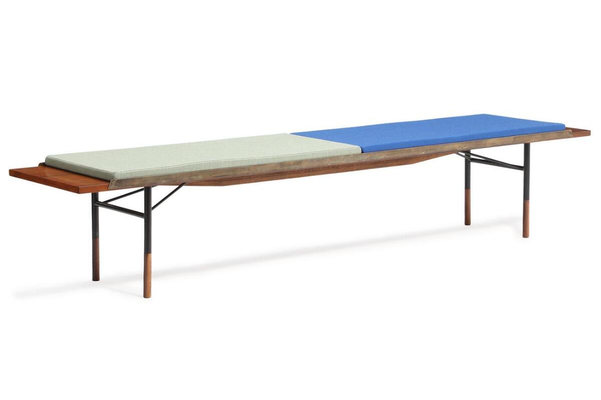 Material: Brazilian Rosewood, Teak, Brass, Anodized Steel, Wool (Cushion)