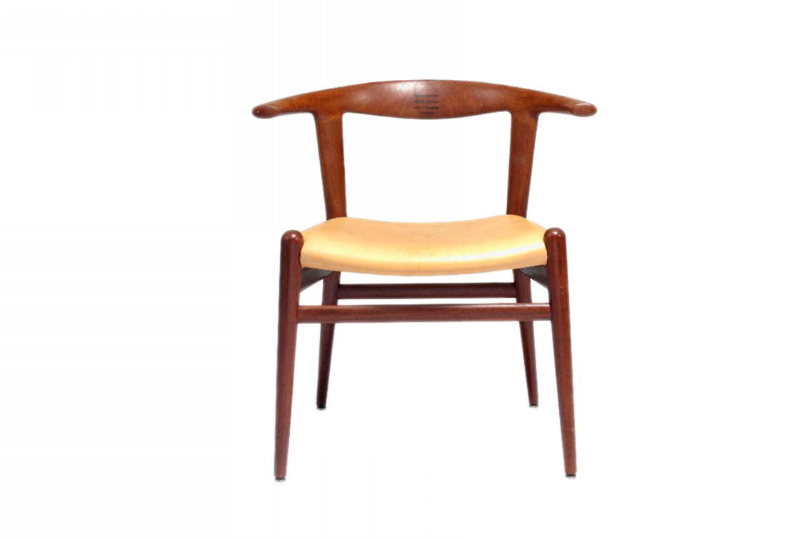 JH-518(Bull Horn / ブルホーン)は、ウェグナーの成熟した設計感覚が凝縮された椅子です。名称の由来である角状のトップレール(背とアームの一体構成)が外へ向けて開き、軽やかな線と確かな掛け心地を同時に生み出します。どの方向から眺めても面のつながりが途切れず、最小限の要素で最大の表情を引き出す発想が貫かれています。