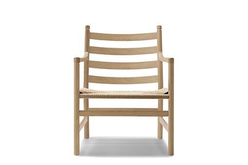 CH44ラウンジチェアは、ハンス・J・ウェグナーが1965年に発表した作品で、彼の「オーガニック・ファンクショナリズム」の哲学を体現する代表的な椅子のひとつです。シェーカー家具から着想を得た簡潔なラダーバックの構造を持ちながらも、ウェグナー独自の曲線やプロポーションを加えることで、禁欲的な機能主義に有機的で温かみのある美しさを与えています。