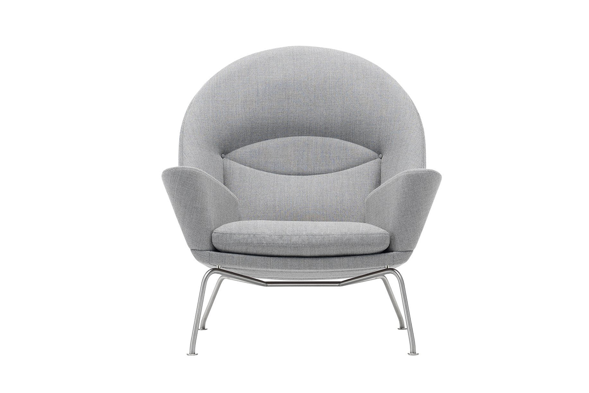 背もたれ上部に生まれる柔らかな膨らみと、ステンレススチール製の脚部との対比は、重厚さと軽快さを同時に表現しています。「Oculus(目)」という名は、背もたれに描かれる独特の曲線に由来し、座る人を包み込むような安心感を生み出します。ウェグナーが追求した人間工学的設計は、背中から頭部までを的確に支える構造を持ち、深いリラックスを提供します。