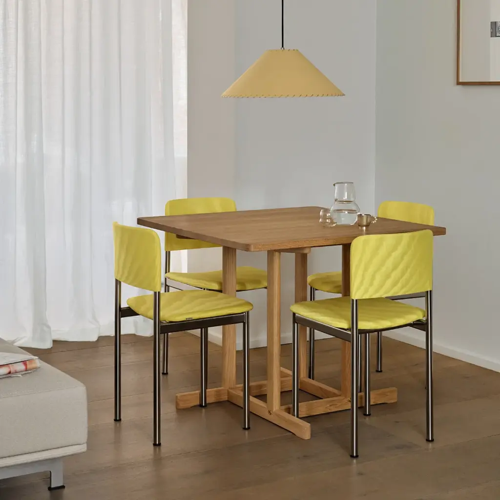 BM80は、アメリカのシェーカー教徒の家具に影響を受けてデザインされたシリーズで、余計な装飾を排し、素材と構造の魅力をそのまま生かしている。今回の復刻では、当時のスクエア型(BM5271・BM6288)に加え、新たにラウンド型のテーブルトップが追加された。素材にはFSC認証を取得したソリッドオーク材を採用し、ソープ仕上げ、オイル仕上げ、ライトオイル仕上げ、スモークドオーク仕上げの4種類の仕上げが選べる。どの仕様も木の質感を大切にしながら、現代のインテリアに自然に馴染む印象を持つ。