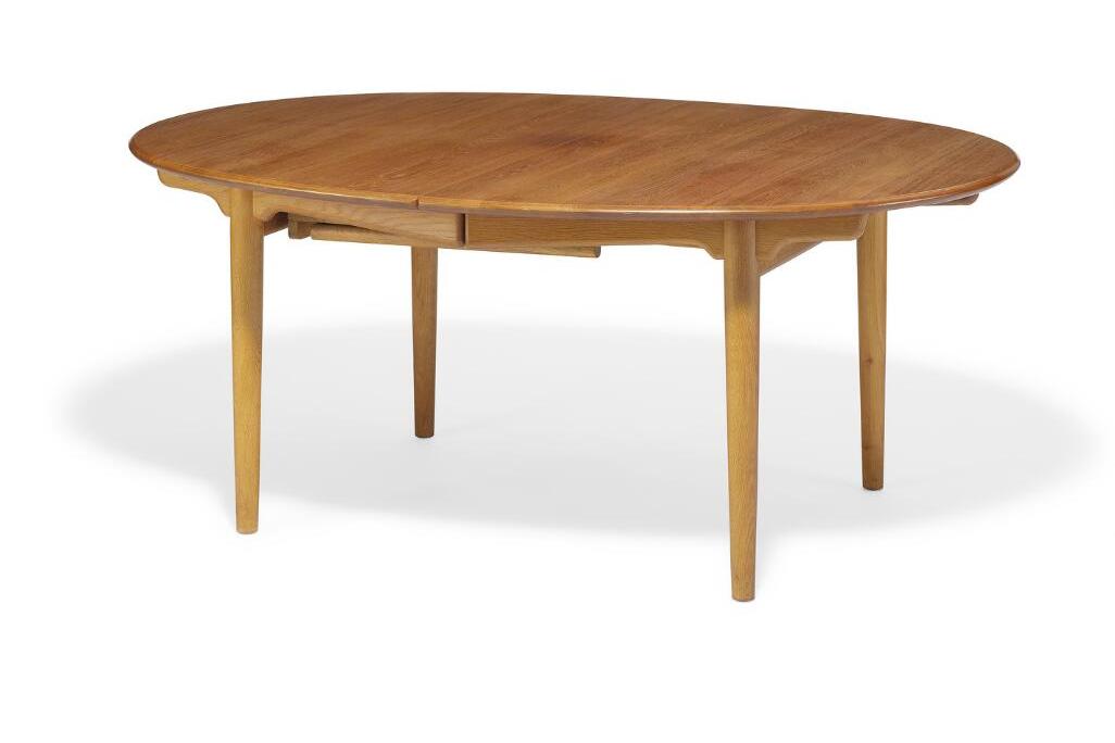 1952年に発表された「JH 567」オーバルダイニングテーブルは、ハンス・J・ウェグナーとマイスターキャビネットメーカーであるヨハネス・ハンセンの協働によって生み出された代表作です。コペンハーゲン家具職人組合展に出品された本作は、当時のデンマーク家具デザイン界において革新的な存在として注目を集めました。