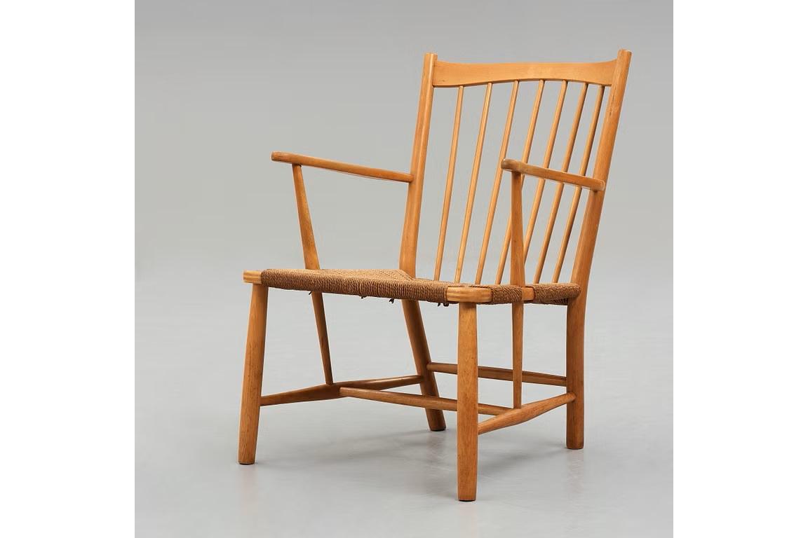 百貨店を通じて紹介されたこの椅子は、特別な空間のための家具ではなく、日常の延長にある存在として位置づけられていました。誠実な素材と抑制された構造によって、生活の中に静かに溶け込むことを目指した設計です。1947年という時点で示されたこの姿勢は、後年の代表作へとつながる思考の基礎となり、デンマーク・モダンの本質を今に伝えています。