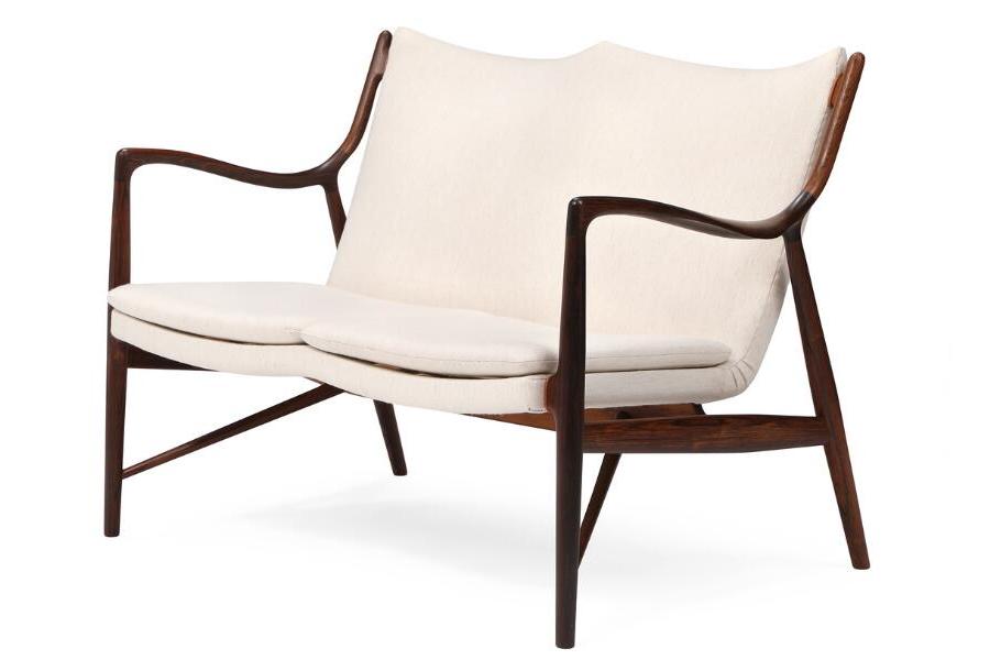 現在ではHouse of Finn Juhlによって復刻されていますが、オリジナルのヴォッダー工房製FJ 45ソファは、経年変化による深い風合いや希少材の存在感により、唯一無二の価値を備えた歴史的傑作として高く評価され続けています。