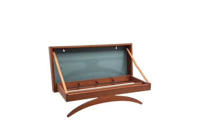 製造を担ったVirum Møbelsnedkeriは、デンマークの職人工房として、こうした精密な構造を実用品として成立させる技術を持っていました。The Hangerは大きな家具ではありませんが、折りたたみの機構、壁面との関係、素材の組み合わせが緊密に設計されており、デンマーク・ミッドセンチュリーの機能美を凝縮した作品といえます。静かな佇まいの中に、生活空間を整えるための知性が込められたハンガーです。